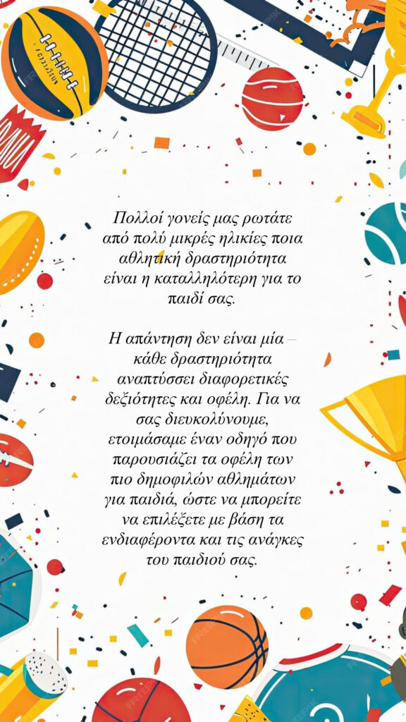 << ΠΟΙΟ ΑΘΛΗΜΑ ΝΑ ΕΠΙΛΕΞΩ ΓΙΑ ΤΟ ΠΑΙΔΙ ΜΟΥ ; - ΕΝΑΣ ΟΔΗΓΟΣ ΓΙΑ ΤΟΥΣ ΓΟΝΕΙΣ >>